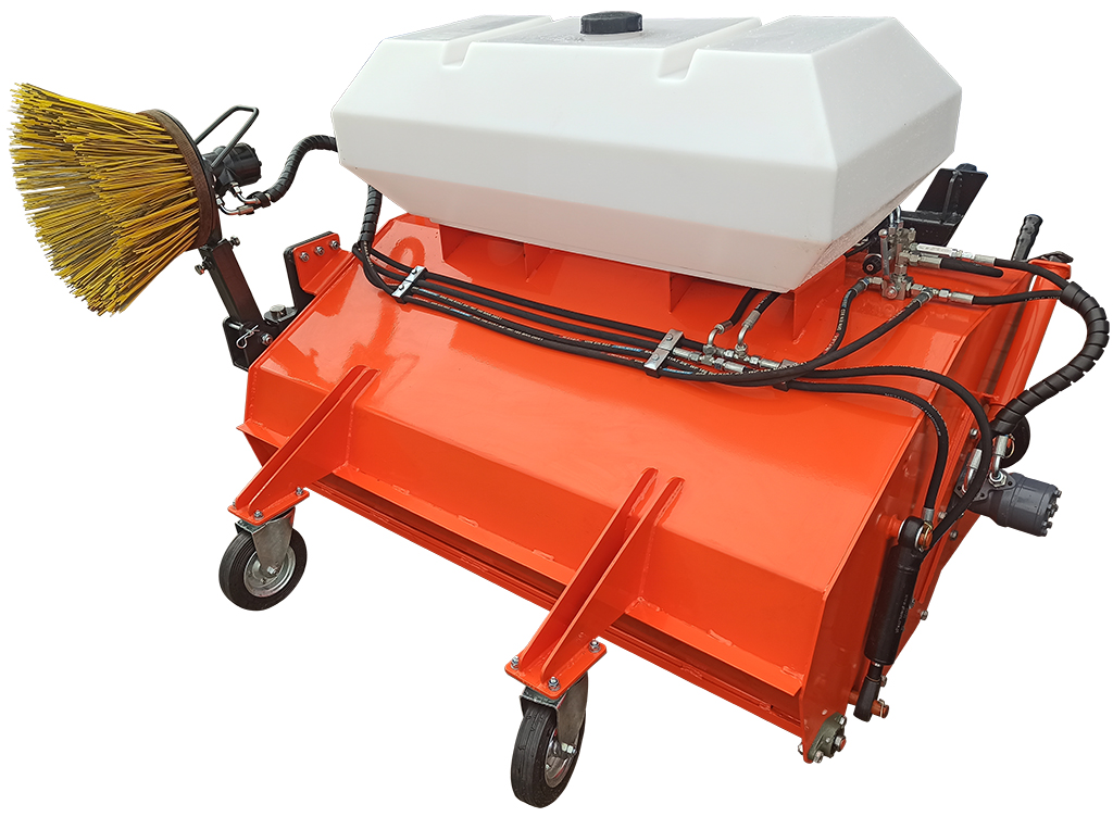 | Szerokość (mm) | Długość (mm) | Wysokość całkowita (mm) | Masa (kg) | Pojemność zbiornika na wodę (l) | Pojemność zbiornika na śmieci (l) | Minimalna moc ciągnika (KM) | Przepływ oleju (l/min) | Ciśnienie oleju (bar) | Średnica szczotki (mm) |